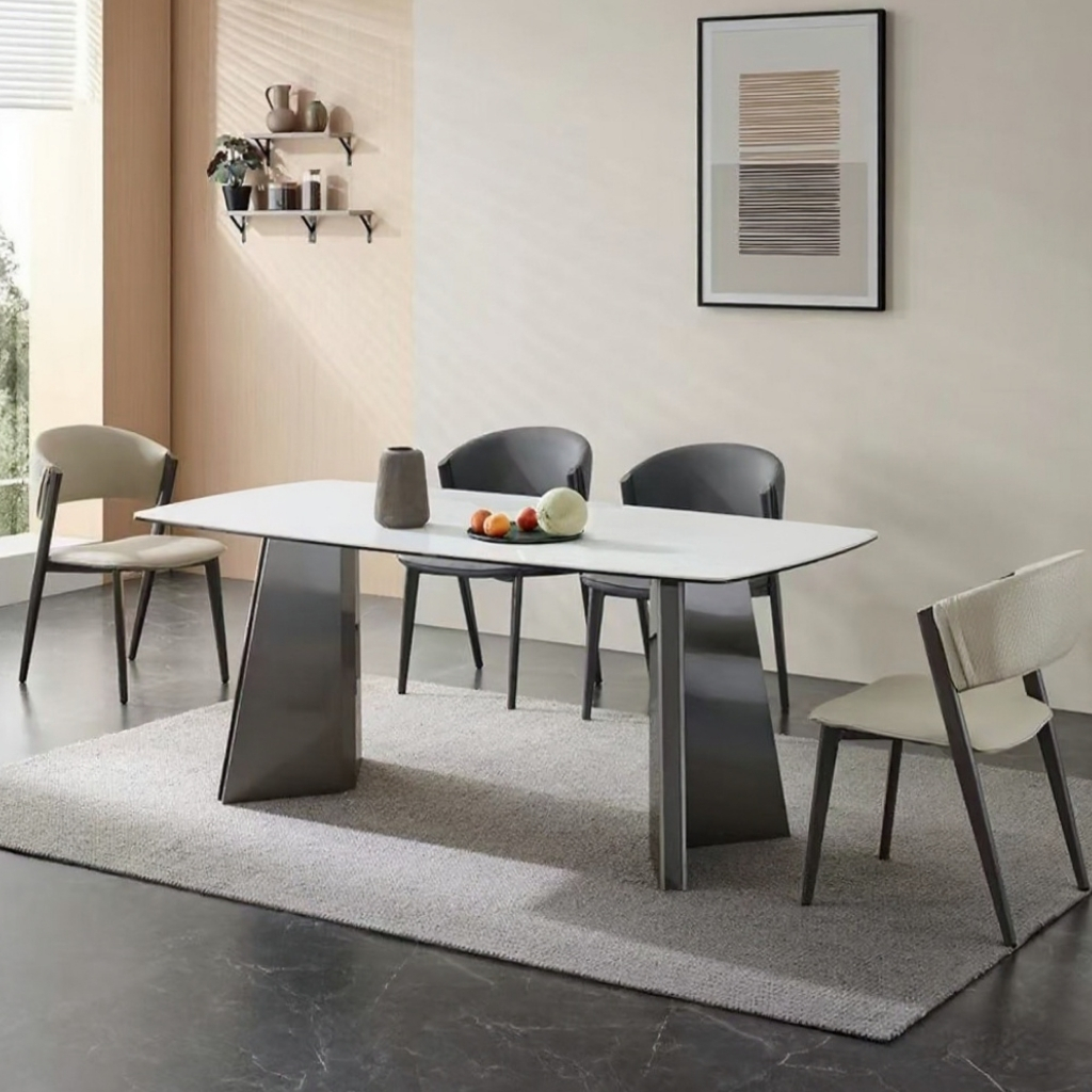 | Sintered Stone | We also have stunning sintered stone dining tables. Known for their resilience and sleek design, these tables are engineered to resist scratches, stains, and heat, making them a practical choice for busy households. With a variety of finishes and colours, they seamlessly blend into any dining room decor. |