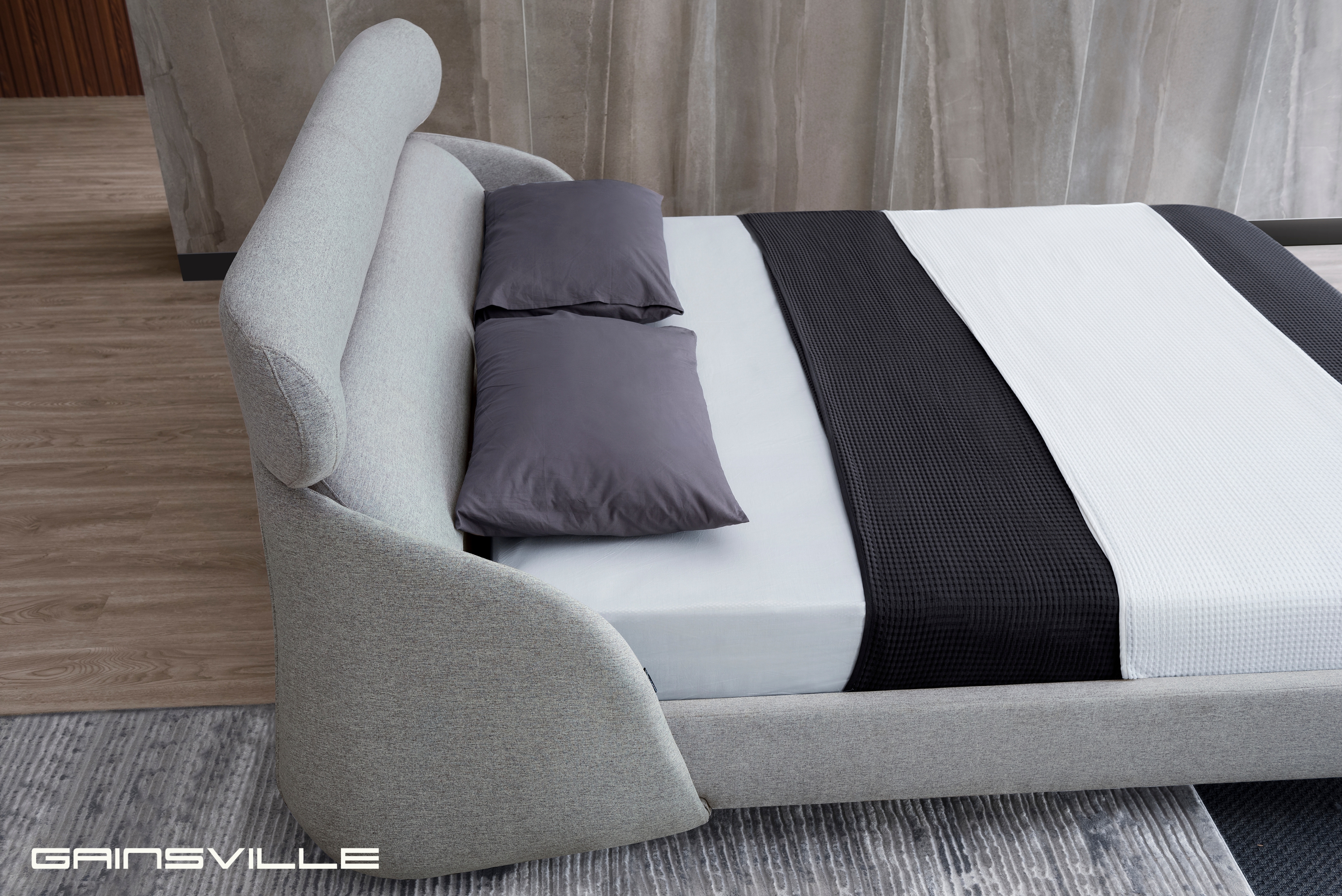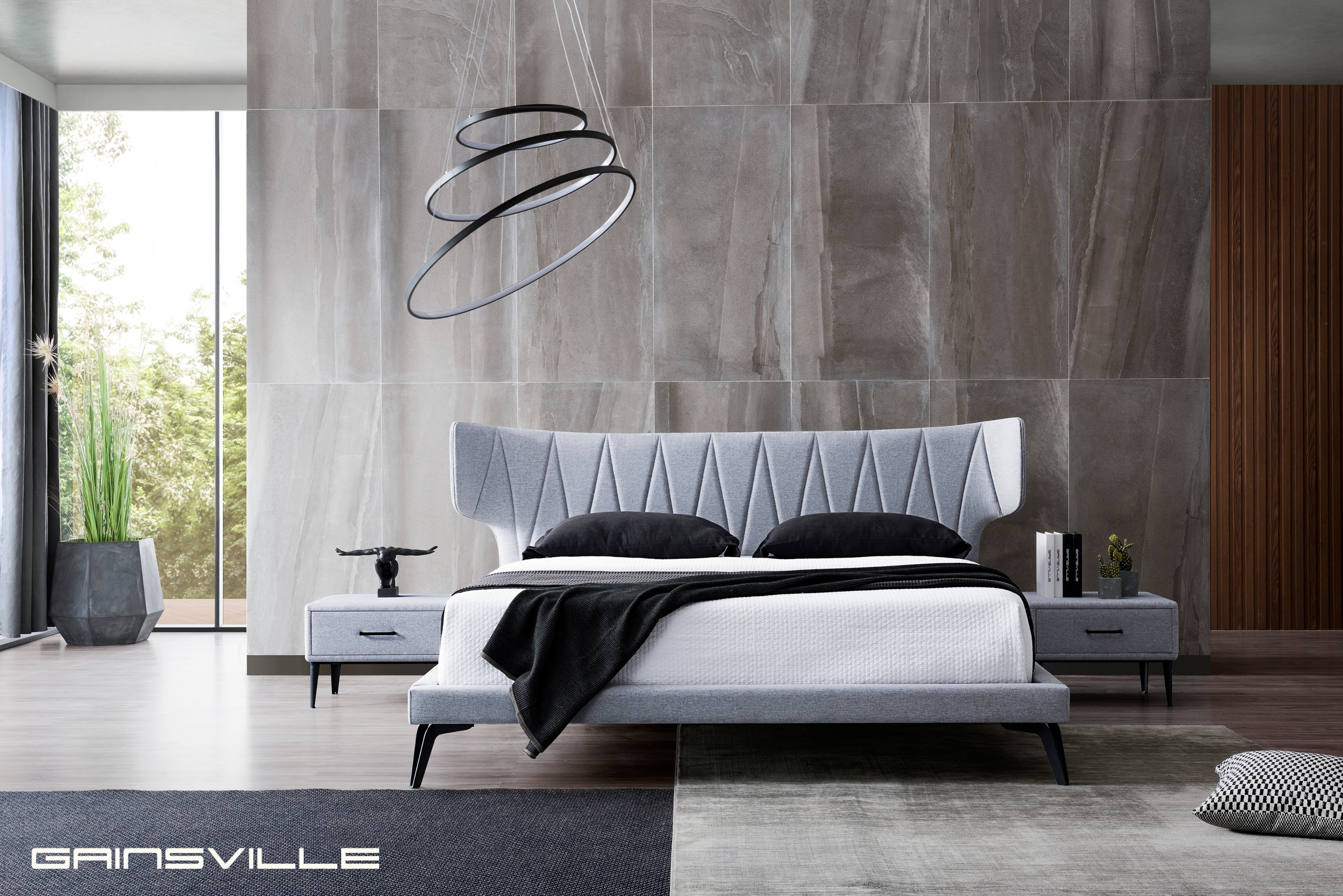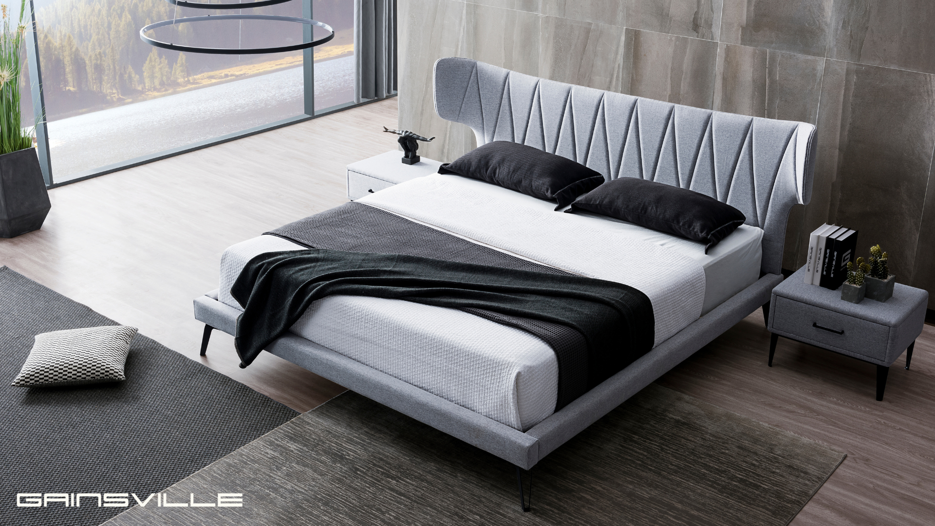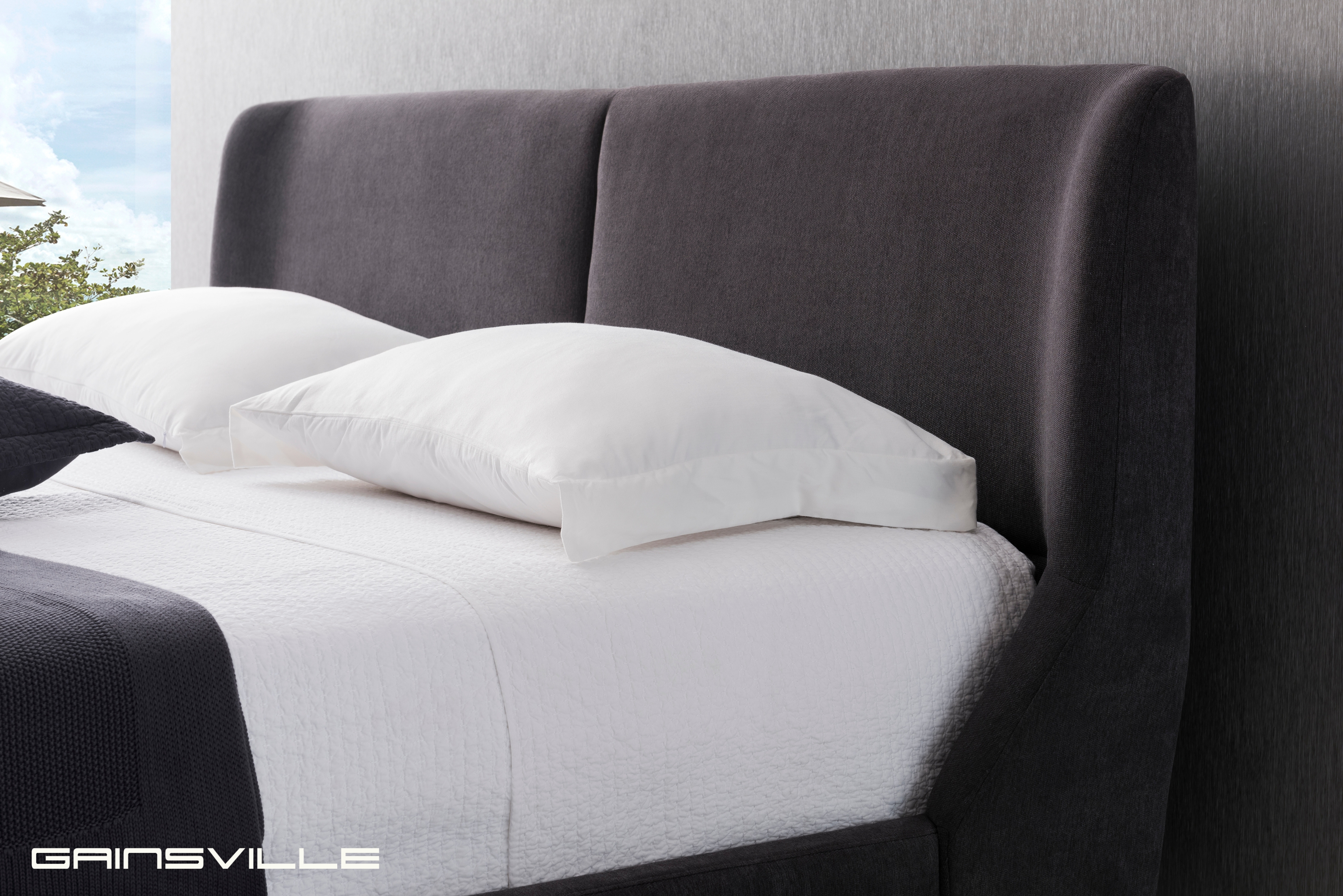 A modern-vintage design that features a contemporary clean-lined base and angular, metal capped feet, the Divani Designer Bed Frame’s stunning look is softened by its eye-catching headboard that includes a round bolster backrest-through upholstery and curvaceous, winged edges to encase its frame.