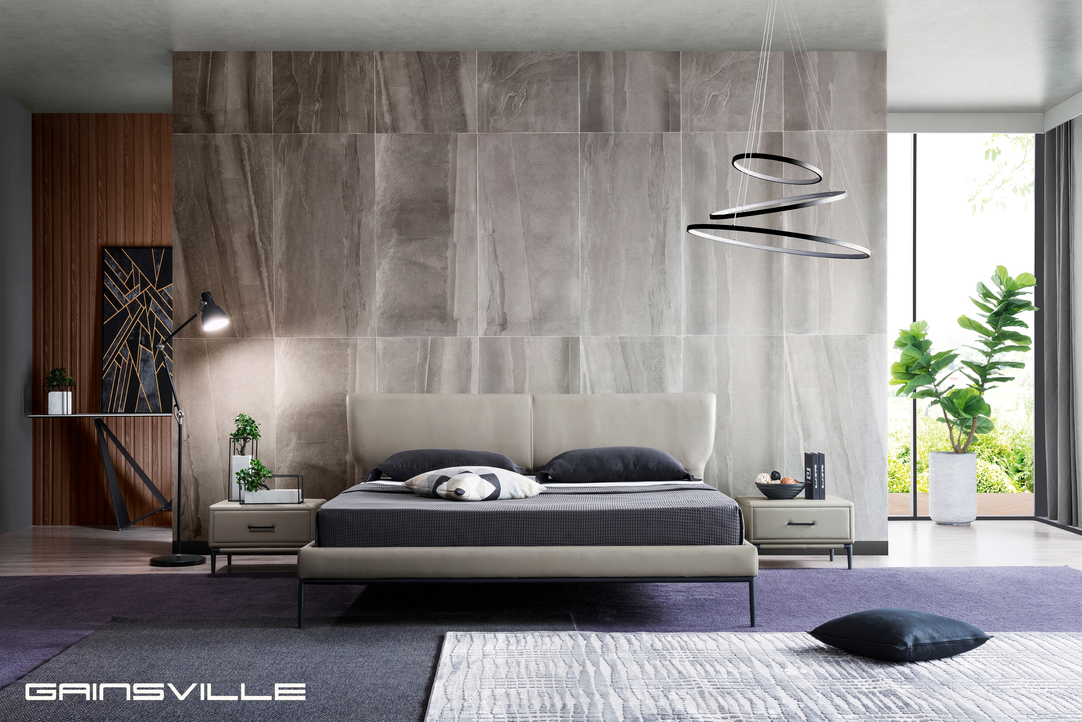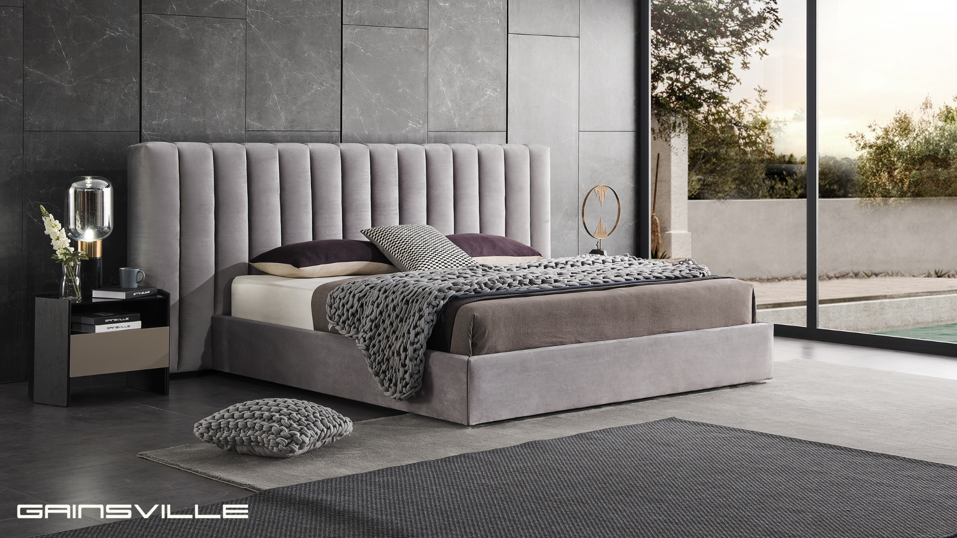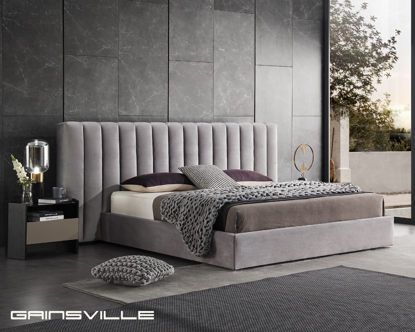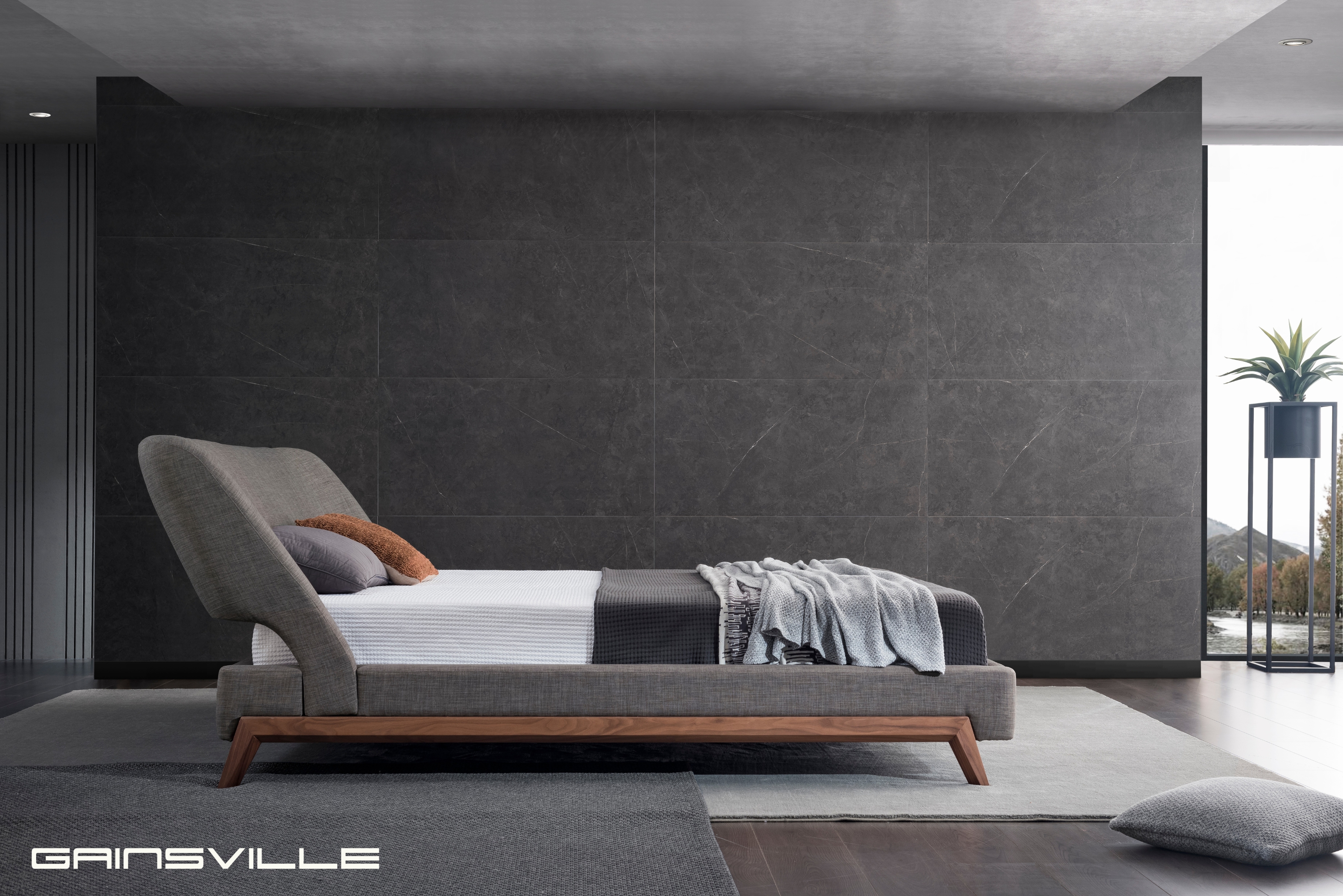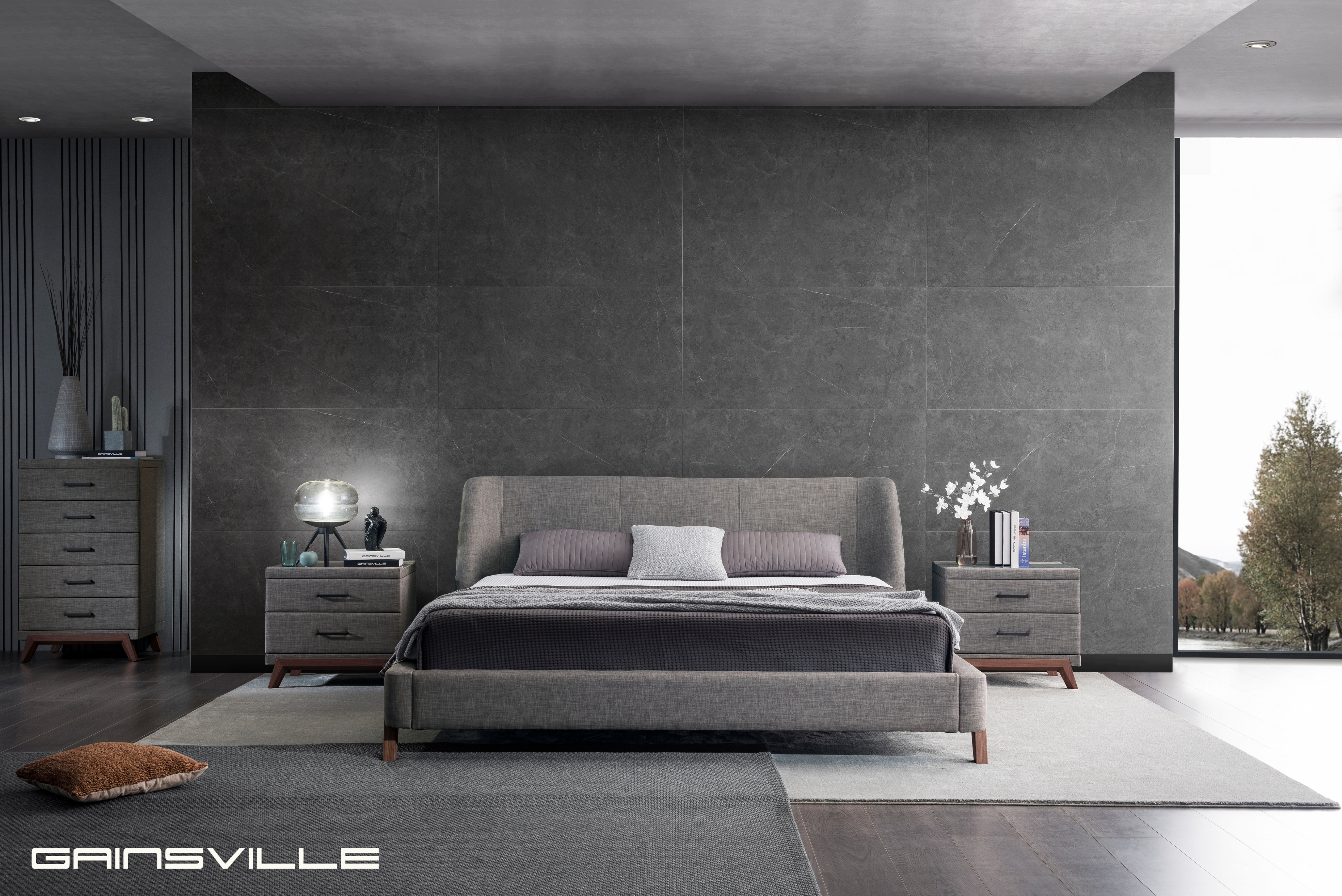 A modern-vintage design that features a contemporary clean-lined base and angular, metal capped feet, the Divani Designer Bed Frame’s stunning look is softened by its eye-catching headboard that includes a round bolster backrest-through upholstery and curvaceous, winged edges to encase its frame.